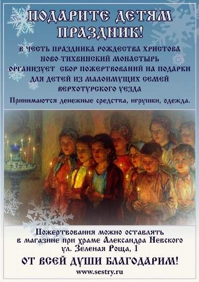 НОВО-ТИХВИНСКАЯ ОБИТЕЛЬ НАЧИНАЕТ АКЦИЮ "ПОДАРИТЕ ДЕТЯМ ПРАЗДНИК!". Екатеринбург,